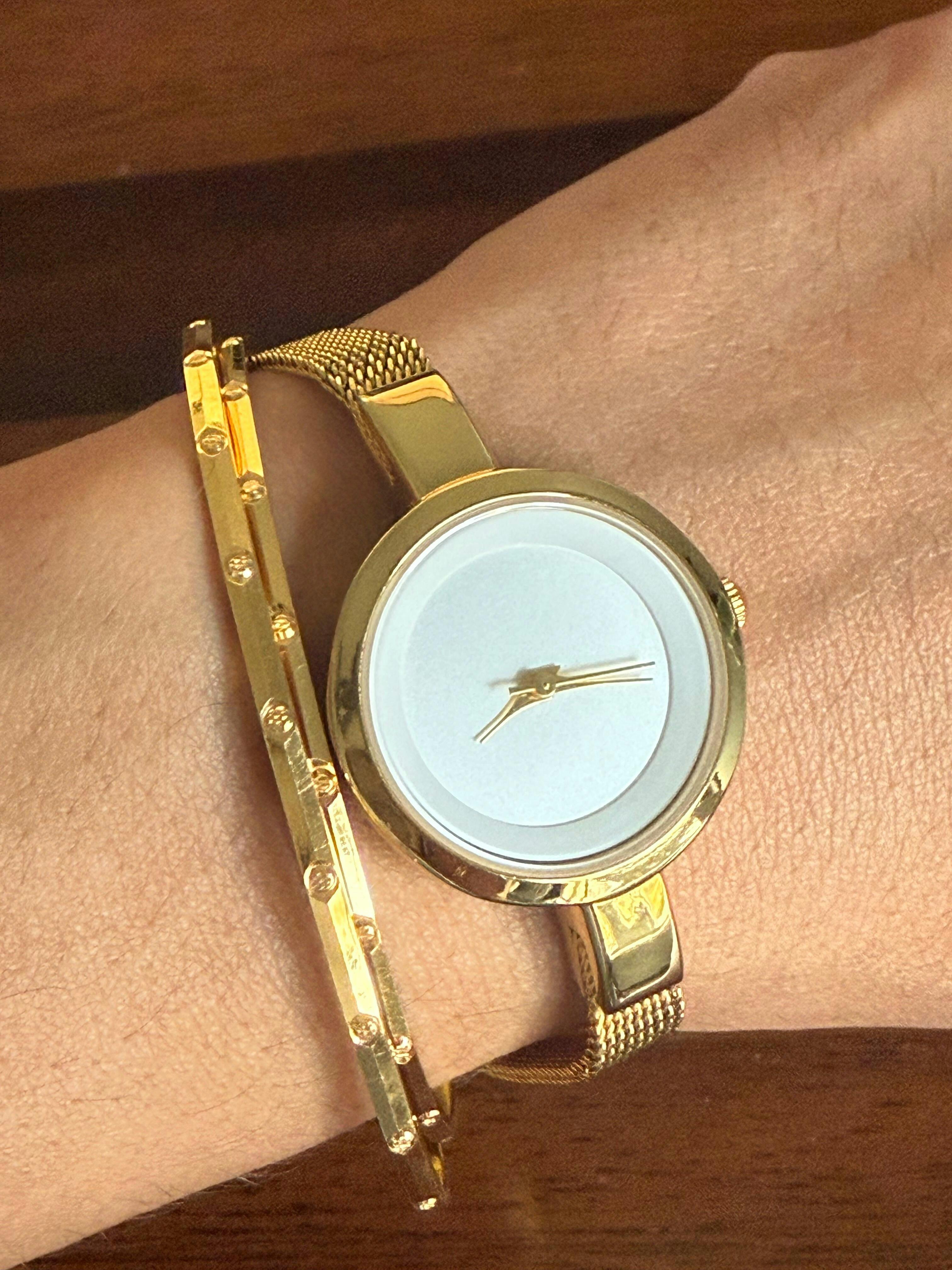 With its gold mesh strap and refined case, this watch is a piece of elegance, but engraved on its back in Arabic is “7:187” — carrying the weight of that reminder with you daily. It’s more than an accessory; it’s a personal call to live each moment ready, aware, and anchored in faith.